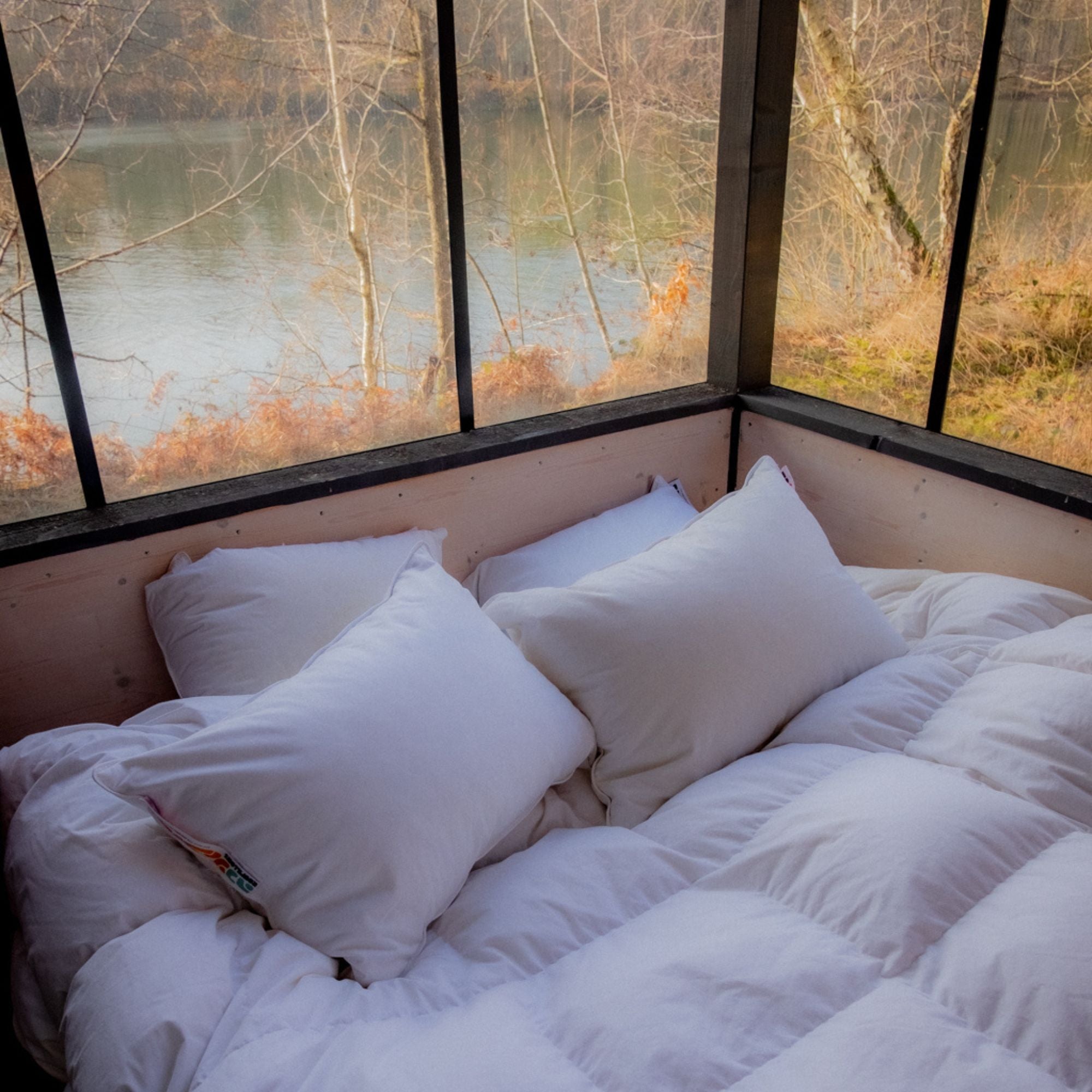 Les couettes et oreillers Roupillons sont gonflants et enveloppants grâce au choix d'un duvet d'une qualité exceptionnelle.